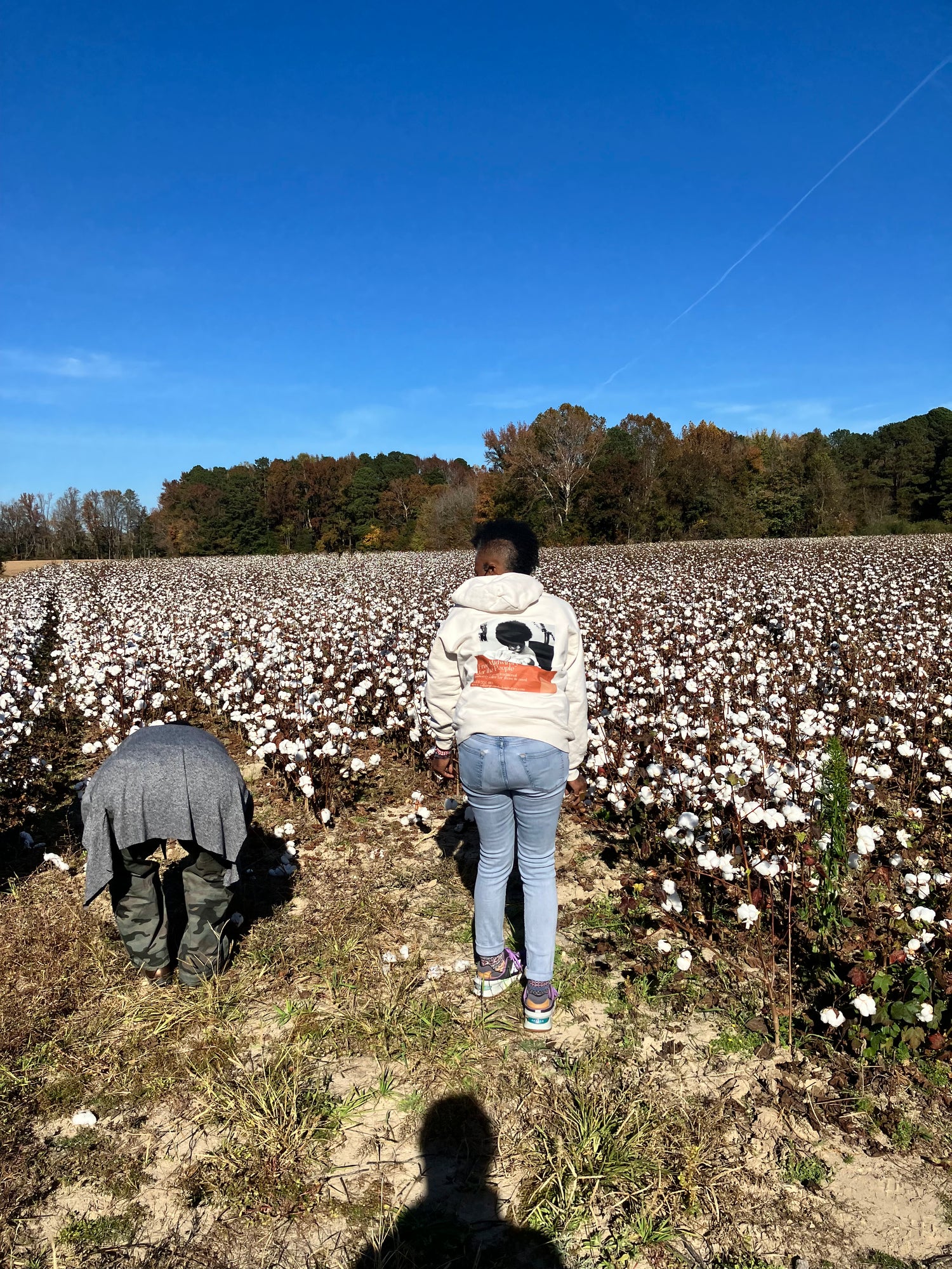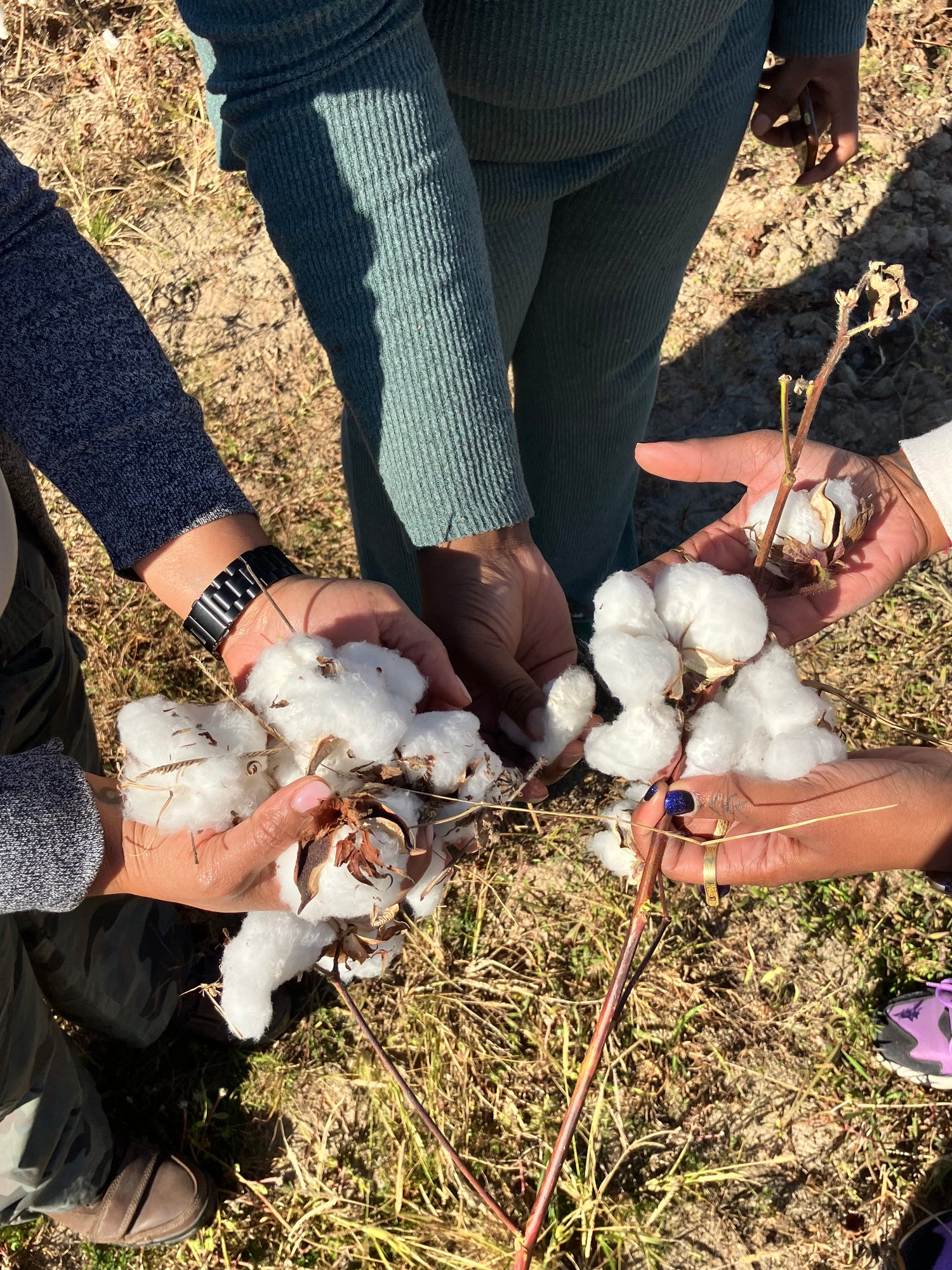 Holding the long stems after the harvest, I felt the weight of history in my hands. Cotton has carried both trauma and survival in our bloodlines — a crop that holds stories of enslavement, labor, and pain. But this day, in this field, we reclaimed it. We touched what once bound us and made it sacred again. Core memories were made, and old wounds were tended. This is traditional midwifery too — not just birth, but healing lineage, taking back what was taken, and transforming it into medicine for the generations to come.