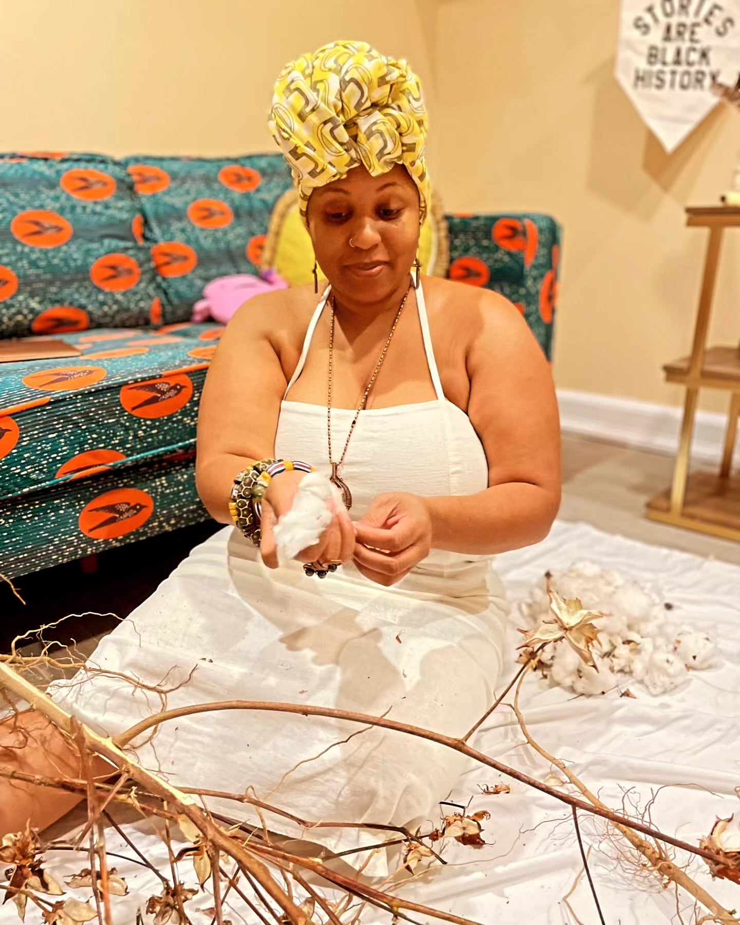 Holding the long stems after the harvest, I felt the weight of history in my hands. Cotton has carried both trauma and survival in our bloodlines — a crop that holds stories of enslavement, labor, and pain. But this day, in this field, we reclaimed it. We touched what once bound us and made it sacred again. Core memories were made, and old wounds were tended. This is traditional midwifery too — not just birth, but healing lineage, taking back what was taken, and transforming it into medicine for the generations to come.